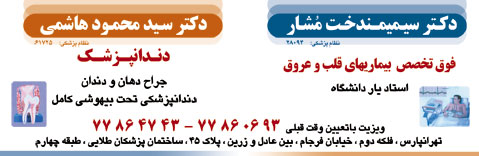 تماس با دکترمشار و دکترهاشمی ۰۲۱-۷۷۸۶۴۷۴۳