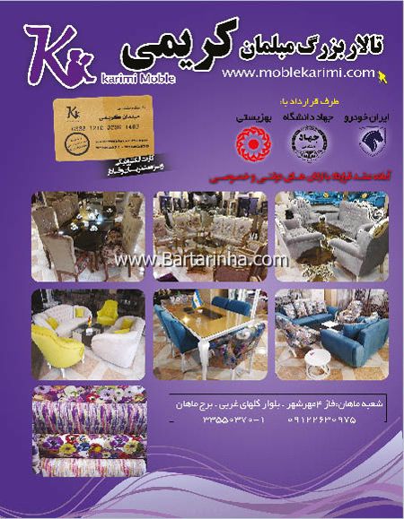 تماس با تالار بزرگ مبلمان کریمی ۰۲۱-۰۲۶۳۳۵۵۰۳۷۰