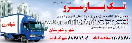 حمل و نقل اثاثیه منزل، جهیزیه و کالاهای اداری و تجاری