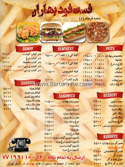تماس با فست فود بهاران - شعبه فرجام ۰۲۱-۷۷۱۹۹۱۱۰