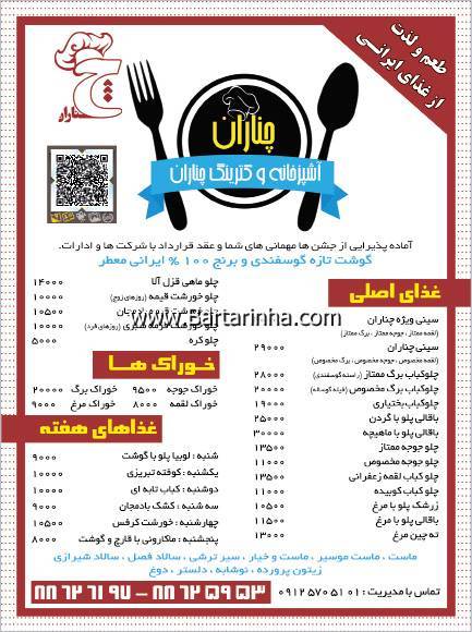 تماس با آشپزخانه و کترینگ چناران ۰۲۱-۸۸۶۲۶۱۹۷