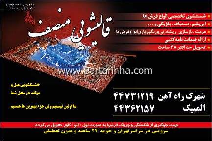 تماس با قالیشویی منصف - 388862 ۰۲۱-۴۴۷۳۱۲۱۹