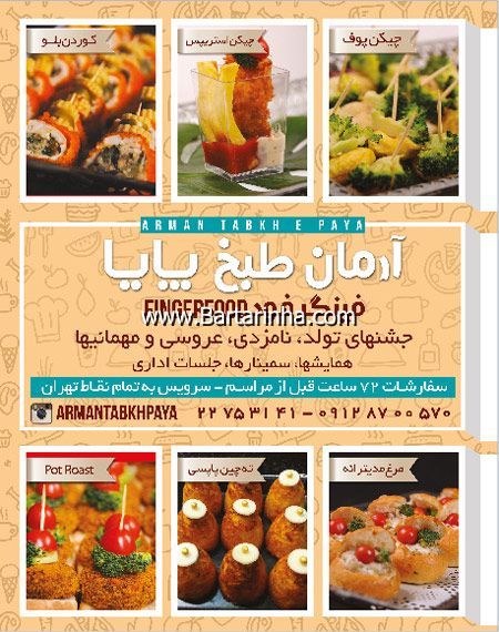 تماس با فینگرفود آرمان طبخ پایا ۰۲۱-۲۲۷۵۳۱۴۱