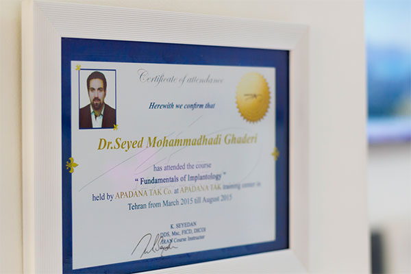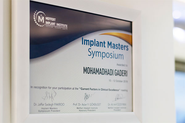 اخذ certificate دوره ی پیشرفته ایمپلنت (زیر نظر دکتر کاوه سیدان رئیس انجمن ایمپیلنتولوژی ایران)