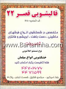 تماس با قالیشویی قصر 22 - کد 216 ۰۲۱-۴۴۷۰۲۶۷۶