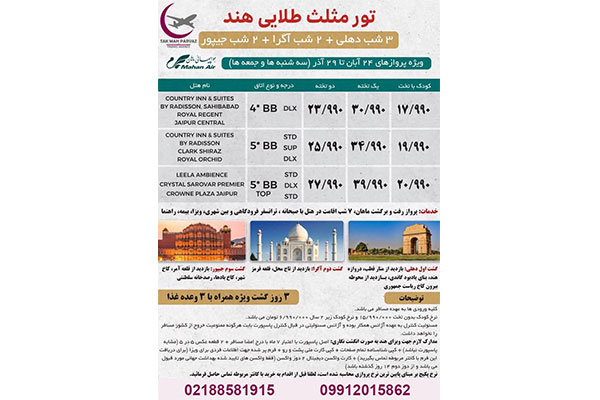 -انواع تورهای اروپایی، آسیایی (تور قطب شمال، تور مثلث طلایی هند)