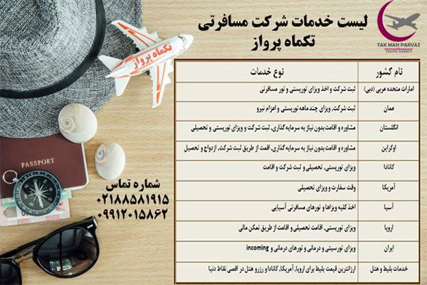 خدمات شرکت تک ماه پرواز