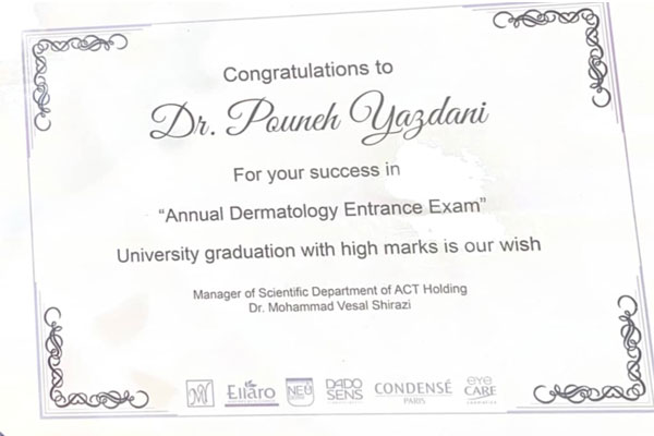 تخصص پوست و مو از دانشگاه تهران و بیمارستان رازی